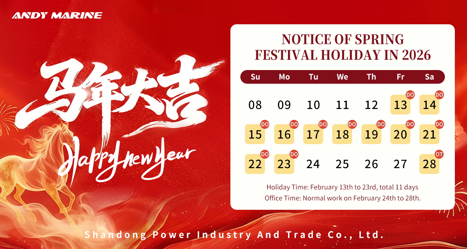 Laevariistvara ja -tarvikute professionaalse tarnijana on Andy Marine pühendunud kvaliteetsete toodete ja usaldusväärsete teenuste pakkumisele. Kevadfestivali lähenedes on ettevõtte erinevate osakondade töö jõudmas lõppjärku, samuti on jõudmas aastavahetuse eelsed tellimis- ja tarneasjad, et tagada toodete õigeaegne jõudmine klientideni.